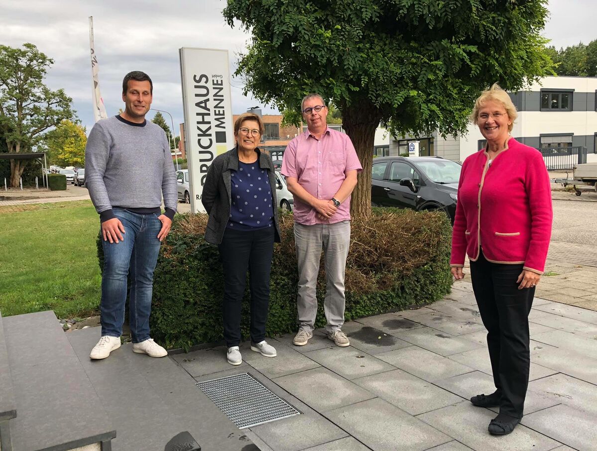 Am Nachmittag schloss sich ein Besuch beim Druckhaus Menne am Rapsacker an. Die Seniorchefin Thekla Menne und der Kundenberater Herr Schulmerich berichteten mir voller Stolz über die Firmengeschichte. 1990 wurde die Druckerei von Rainer Menne am Standort in der Kanalstraße gegründet. Die Firma ist heute an 2 Standorte tätig und beschäftigt 23 Mitarbeiter und Mitarbeiterinnen. 2012 wurde die Großproduktion in den Rapsacker verlegt. In der Kanalstraße befindet sich heute ein Copy- und Textilshop.
